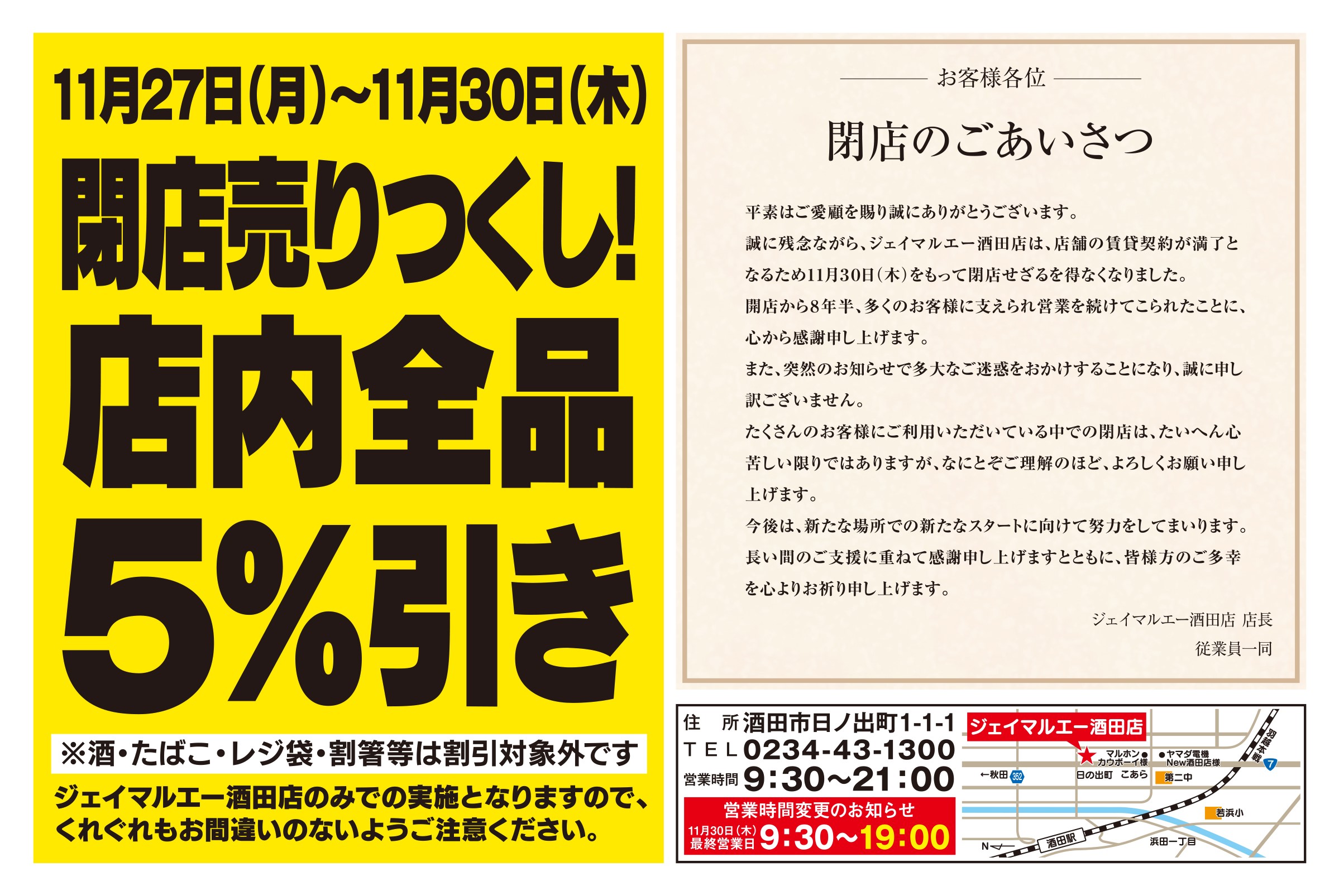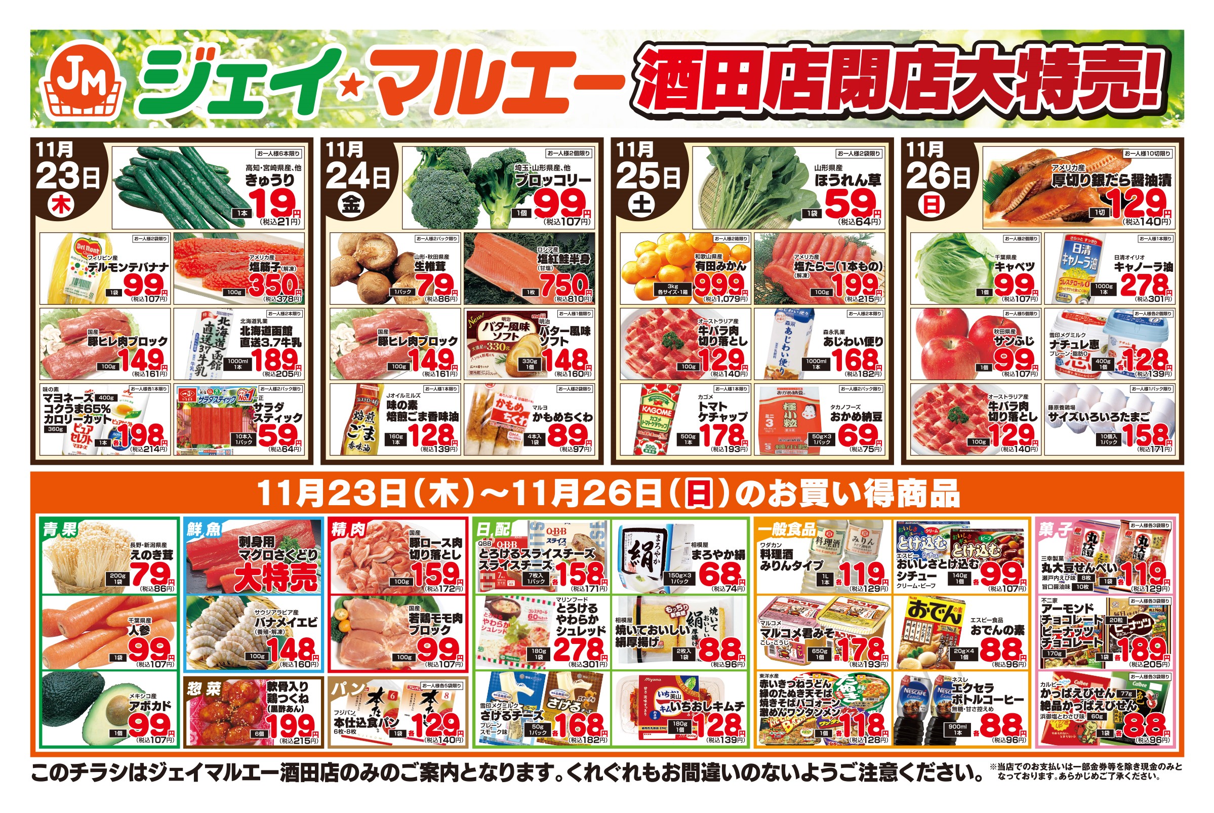 11月23日~酒田店閉店大特売!チラシ情報