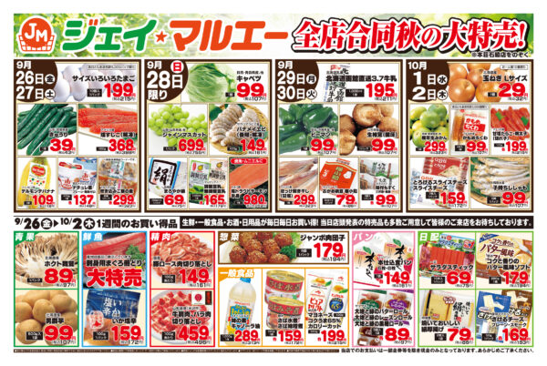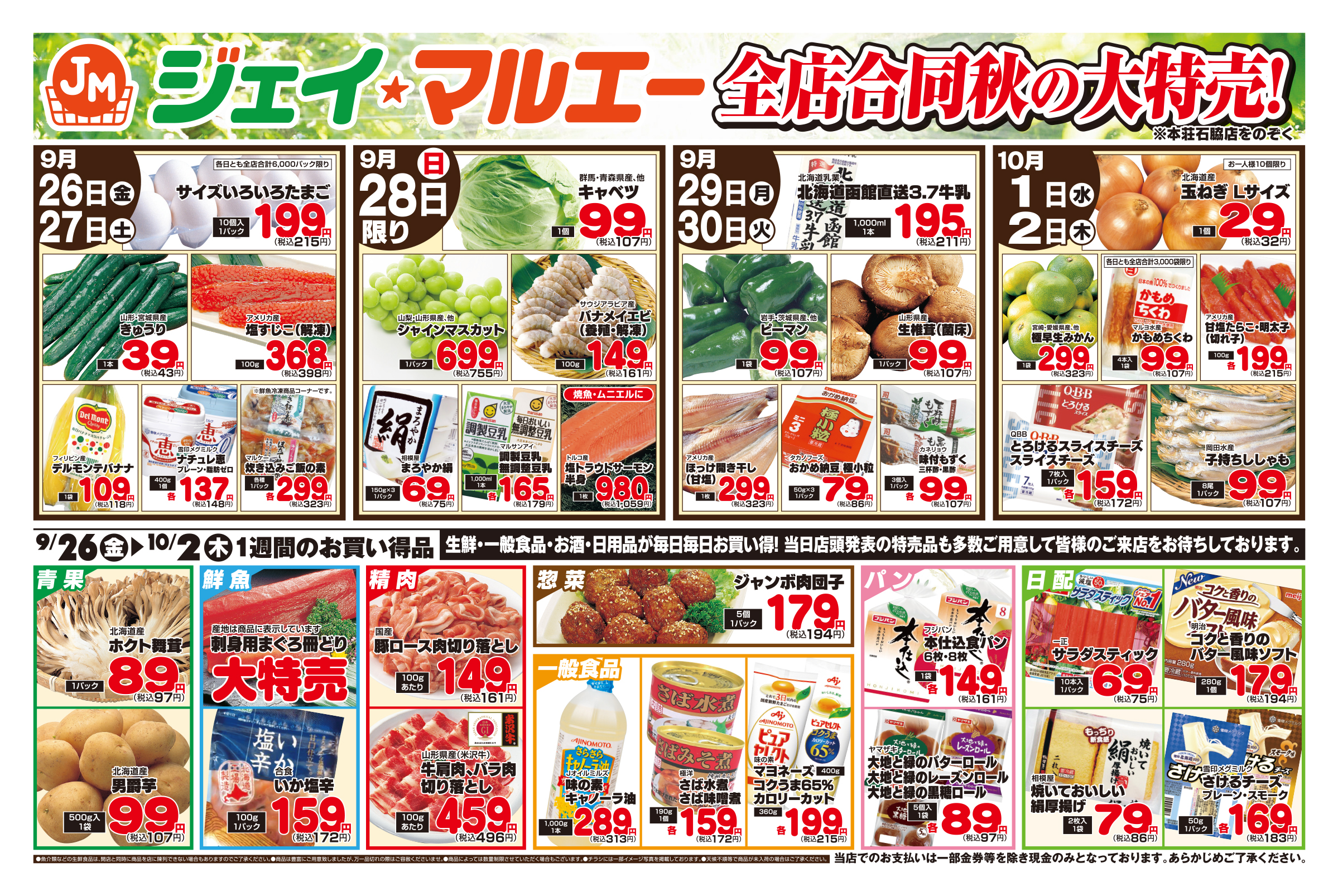 9月26日~酒田北店・鶴岡店・鶴岡南店 秋の大特売!チラシ情報